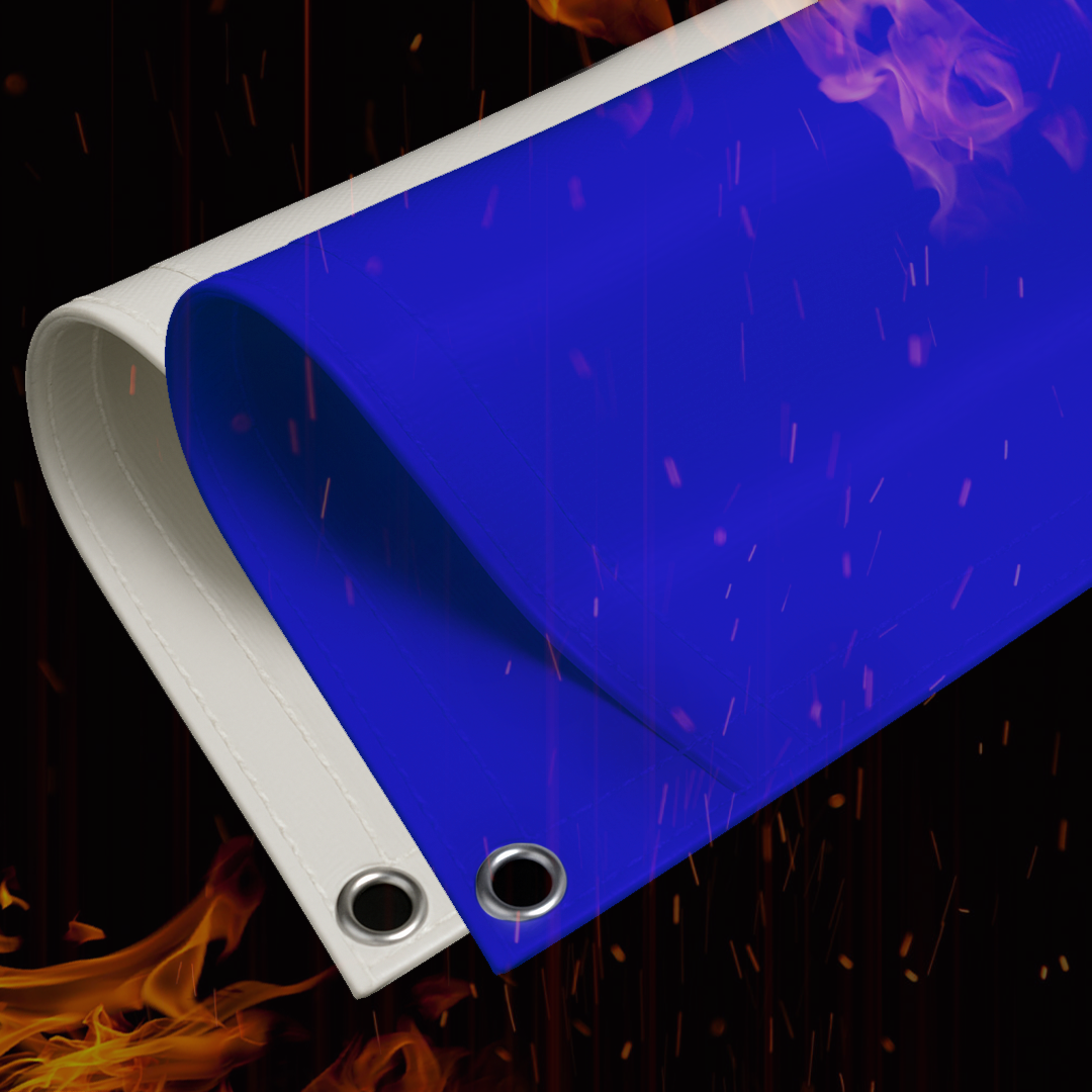 Lona súper reforzada con recubrimiento especial retardante al fuego, ideal para zonas de alto riesgo y proyectos industriales donde se exige máxima seguridad, resistencia y control térmico.